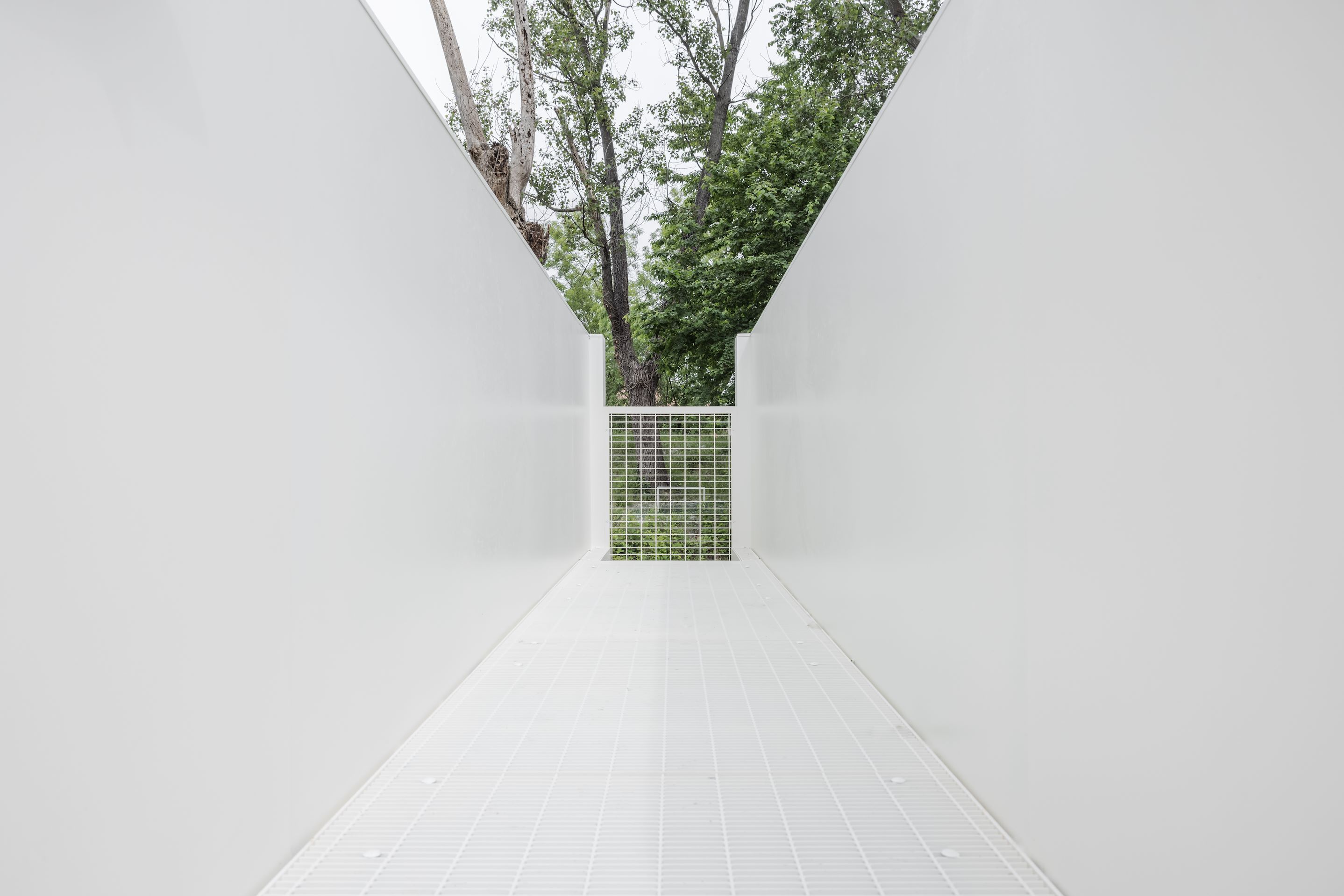 The project seeks to produce a new reference plane raised above the existing ground to a new ground zero. Thus, a simple structure, which gives the concept of a chair a unique interpretation, is placed carefully in the park, in between the trees and next to the old gun-powder building. It is based on a new standard: not the regular standard of a seat at a height of 45 centimeters, but rather a 350 centimeters height that refer to landscape (level -313.9). Just in front of it, on the uplifted embankment surrounding the historic water fort, is located another bench. Facing each other, the act of sitting takes place within the new datum of the adjacent canopies, creating the surprising possibility of an intimate encounter.