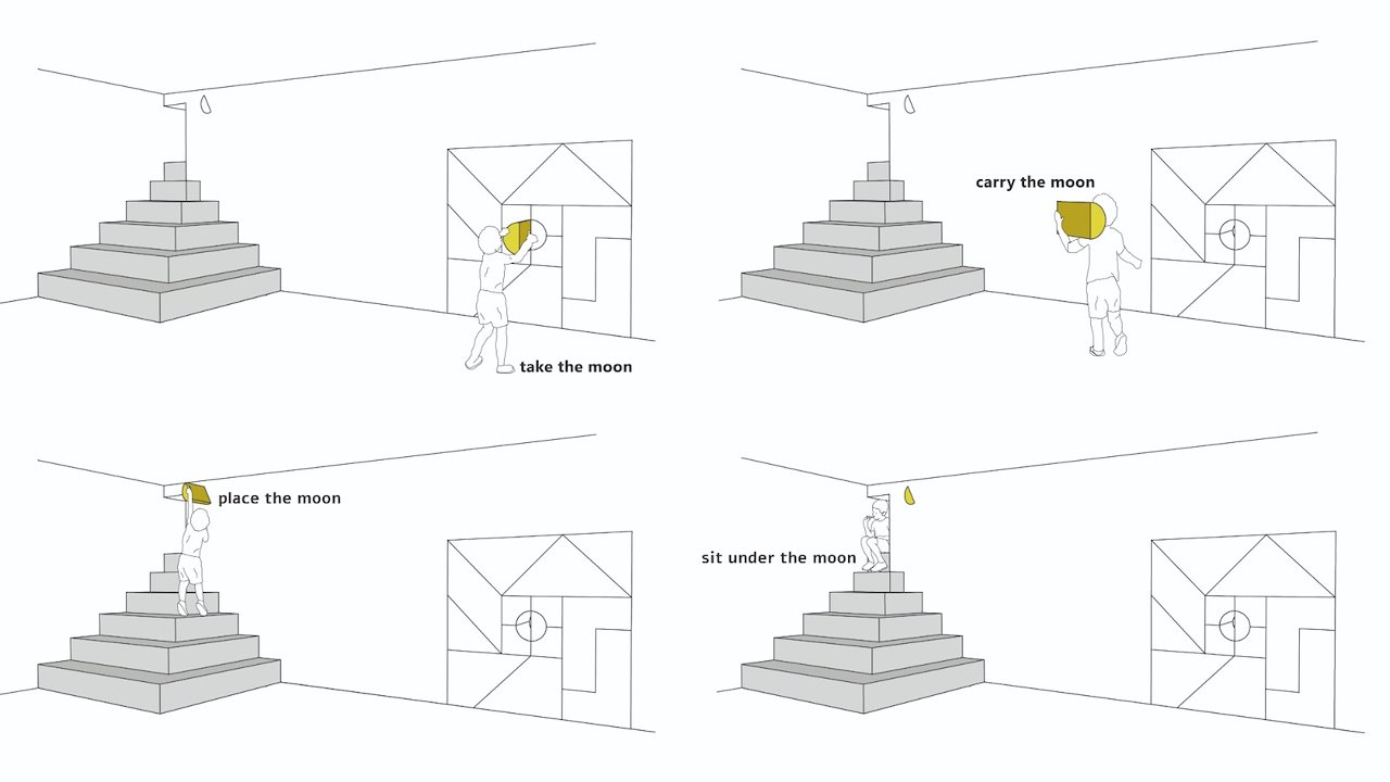The space is in constant change, bringing playfulness to a traditionally rigid environment. An array of static elements allows children to experience the exhibition space of the museum at different heights. Sitting close to the ceiling, one can look down at the entire space, or remain quietly under the moon while listening to audio recordings from the city’s parks and beaches. This play on the sense of interior and exterior makes the museum part of the city, and the city part of the museum.