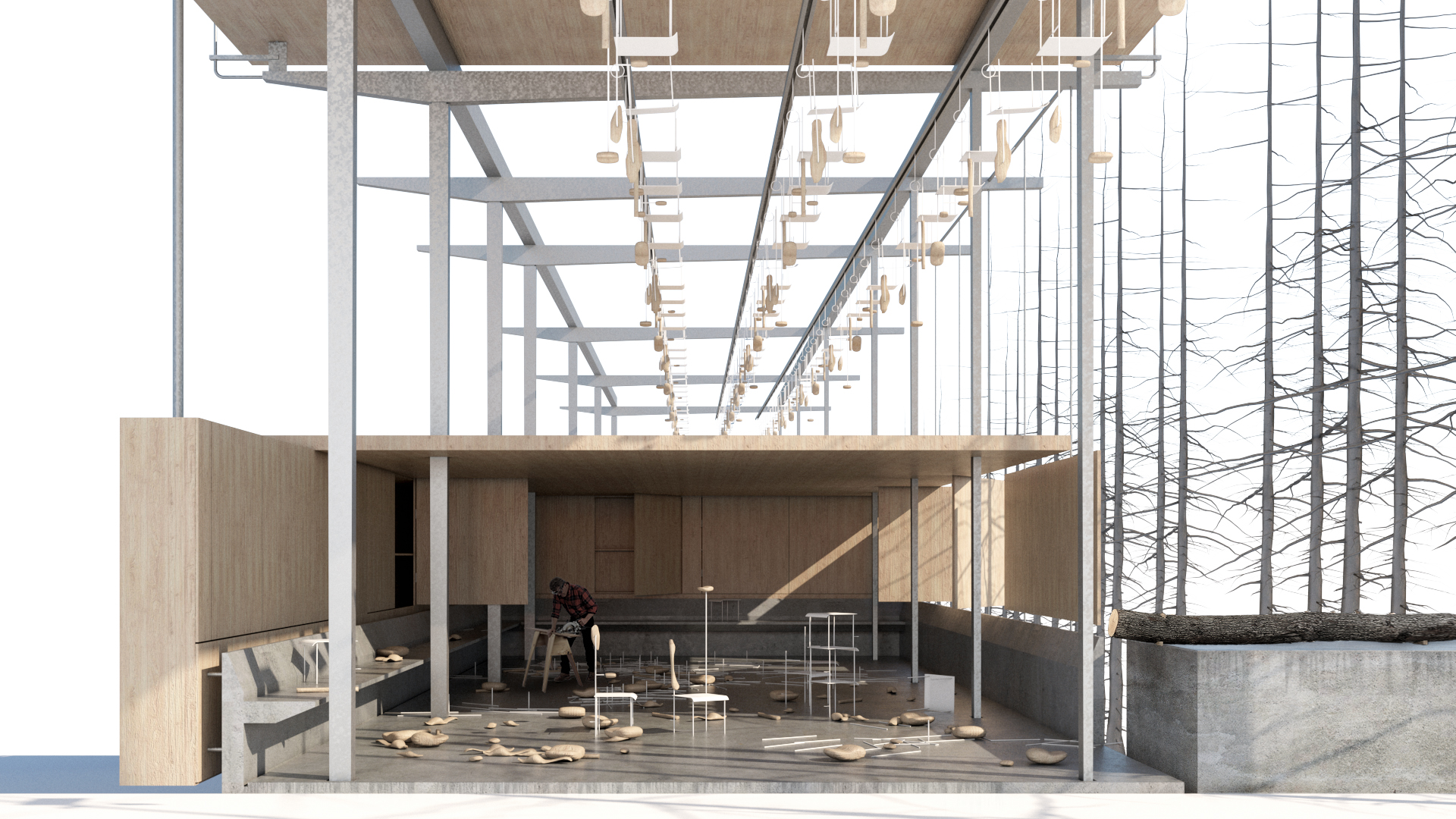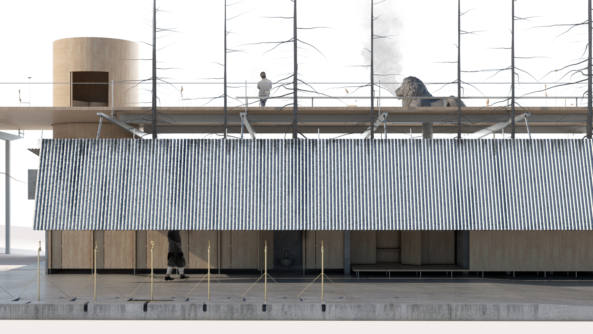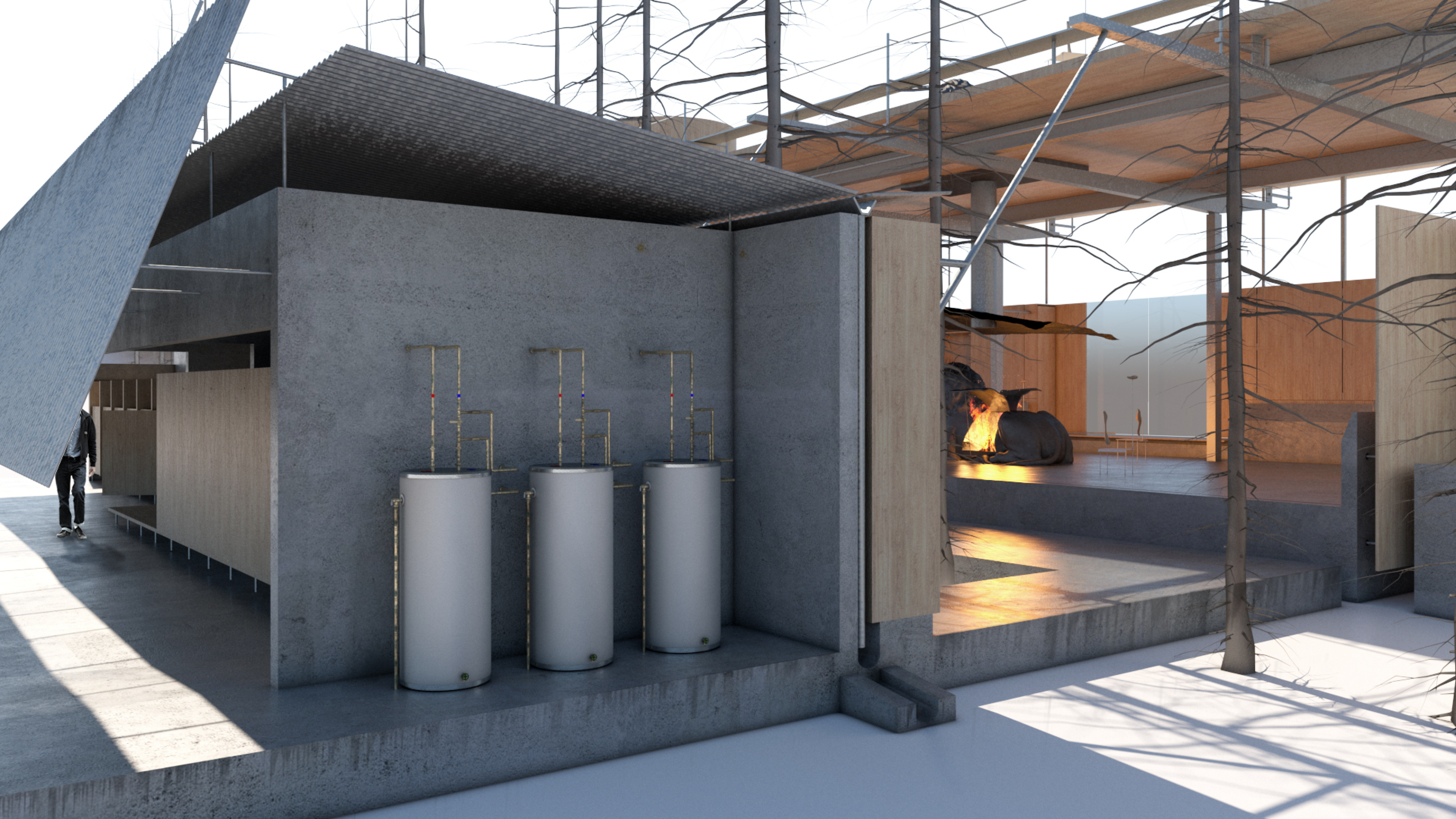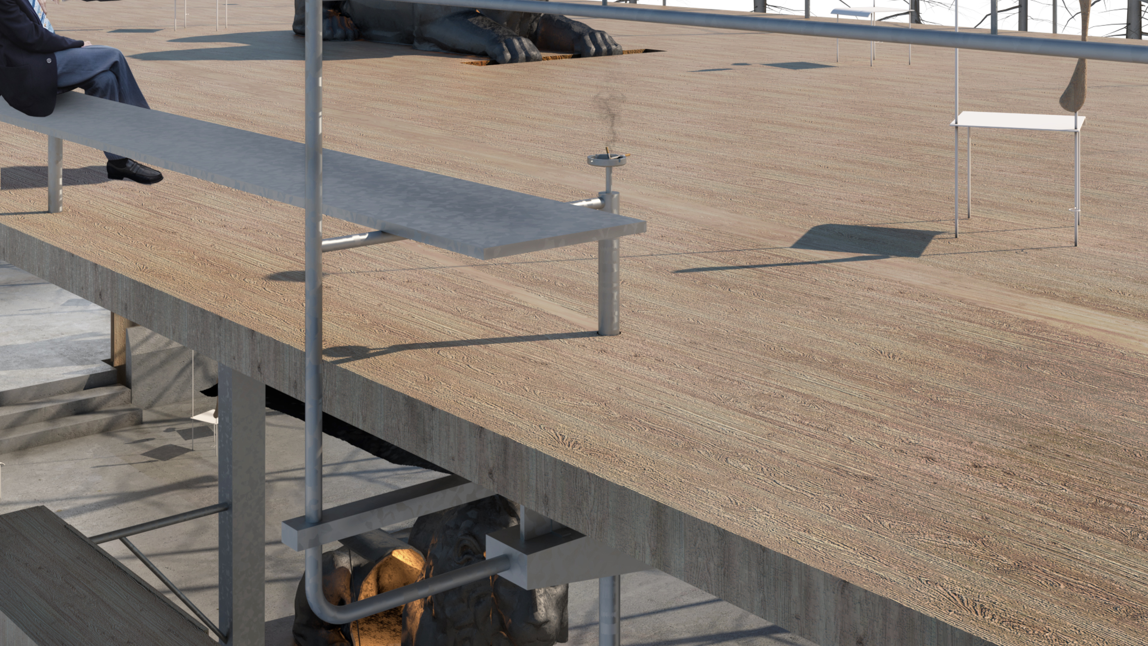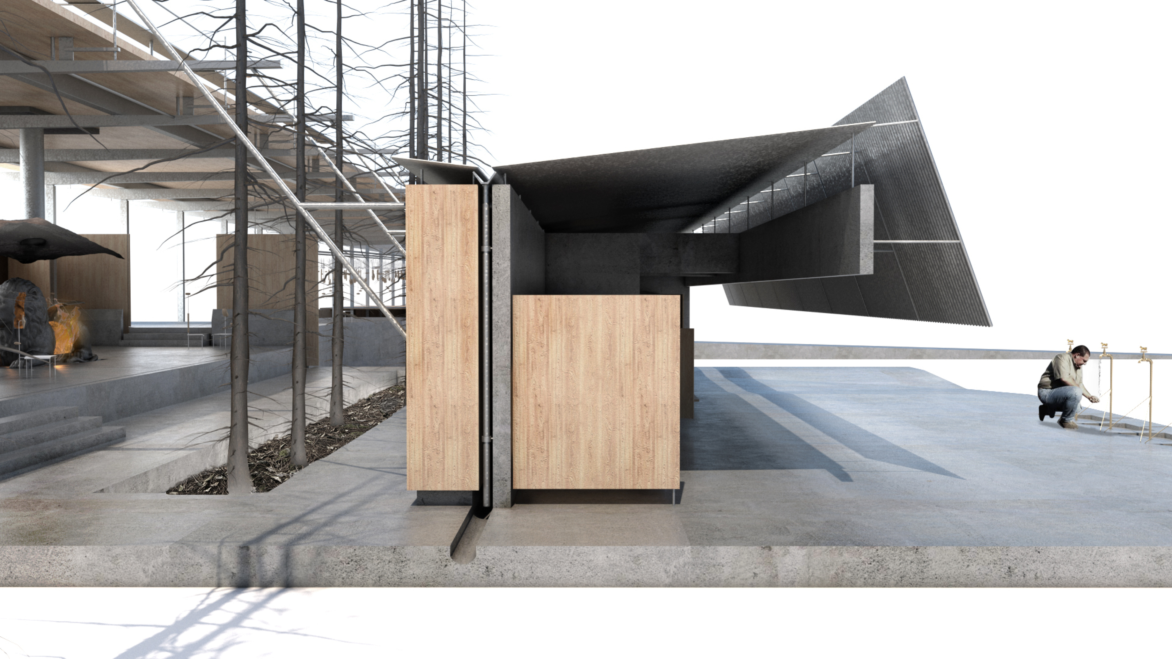 Situated in the Oslo forest, the project examines the ancient program of conflict in landscape. The clearing’s inherent quality of emptiness is the spatial and programmatic starting points of a linear parliament. Its tectonic logic is reversed – there are no rooms but rather an exterior that is never fully enclosed, remaining in an almost-interior state.