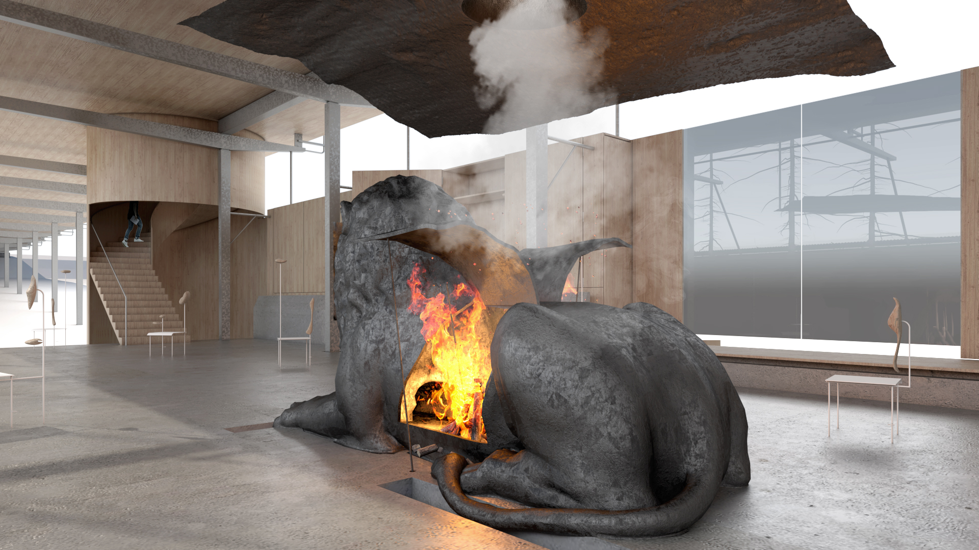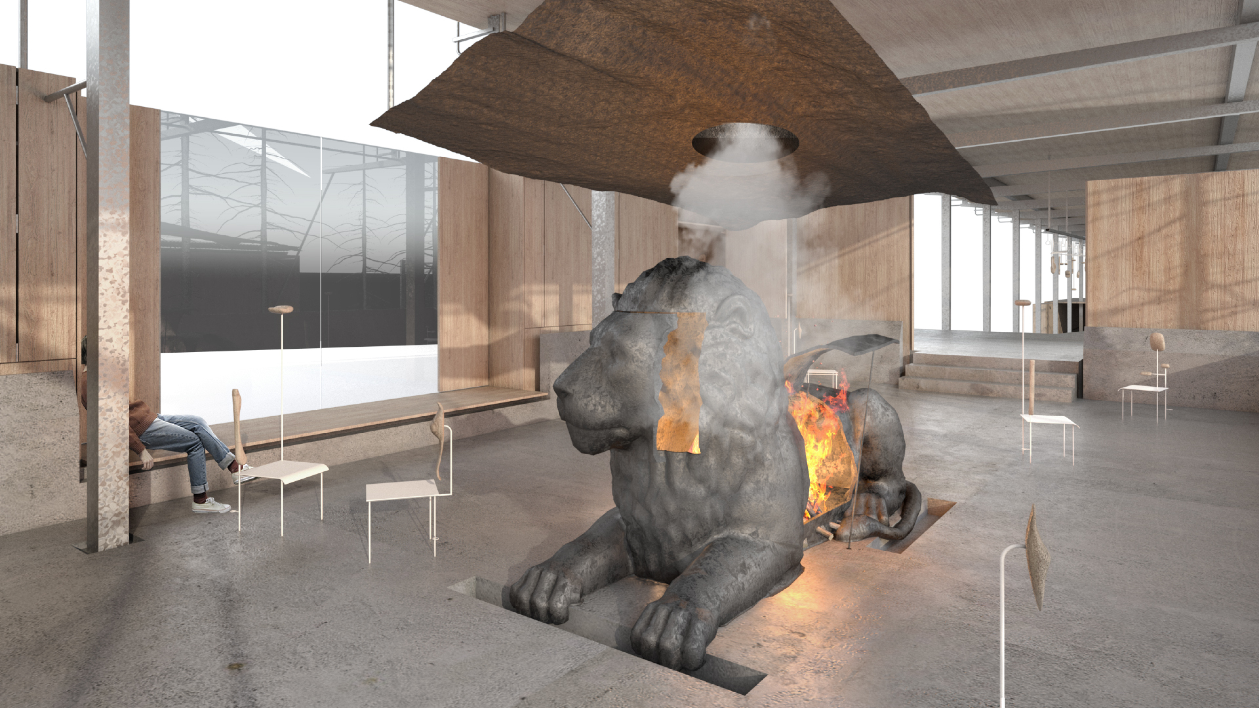 The two lions from Oslo’s parliament structure are essential parts of the Norwegian narrative and array of urban symbols. I stole the animals – I did not borrow them. They are reclaimed from urban space to be used as constructive and programmatic building parts, reintegrating the city’s representation of landscape into real landscape.